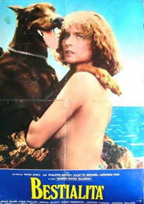 兽性Bestialit agrave;(1976)生活在海岛上的一对无子女的夫妇保罗和伊薇特,由于无聊,在晚间常常参加社会各界名流的聚会来缓解他们的郁闷心情,正是在这样的时间段,一个神秘的年轻女孩雅尼娜就定期出现在这里,她对他们家的狗着迷